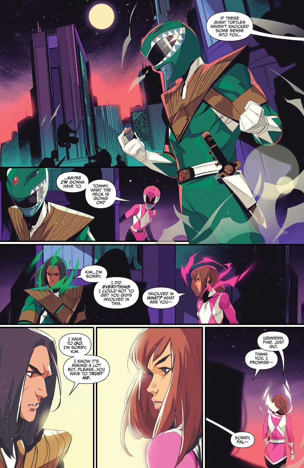 De nouveau confronté un peu plus tard au quatuor protecteur de New-York, Tommy se transforme en Ranger Vert. S’ensuit alors un combat où l’équipe complète Mighty Morphin fait face aux Tortues Ninja après avoir repéré la signature énergétique de leur ami.