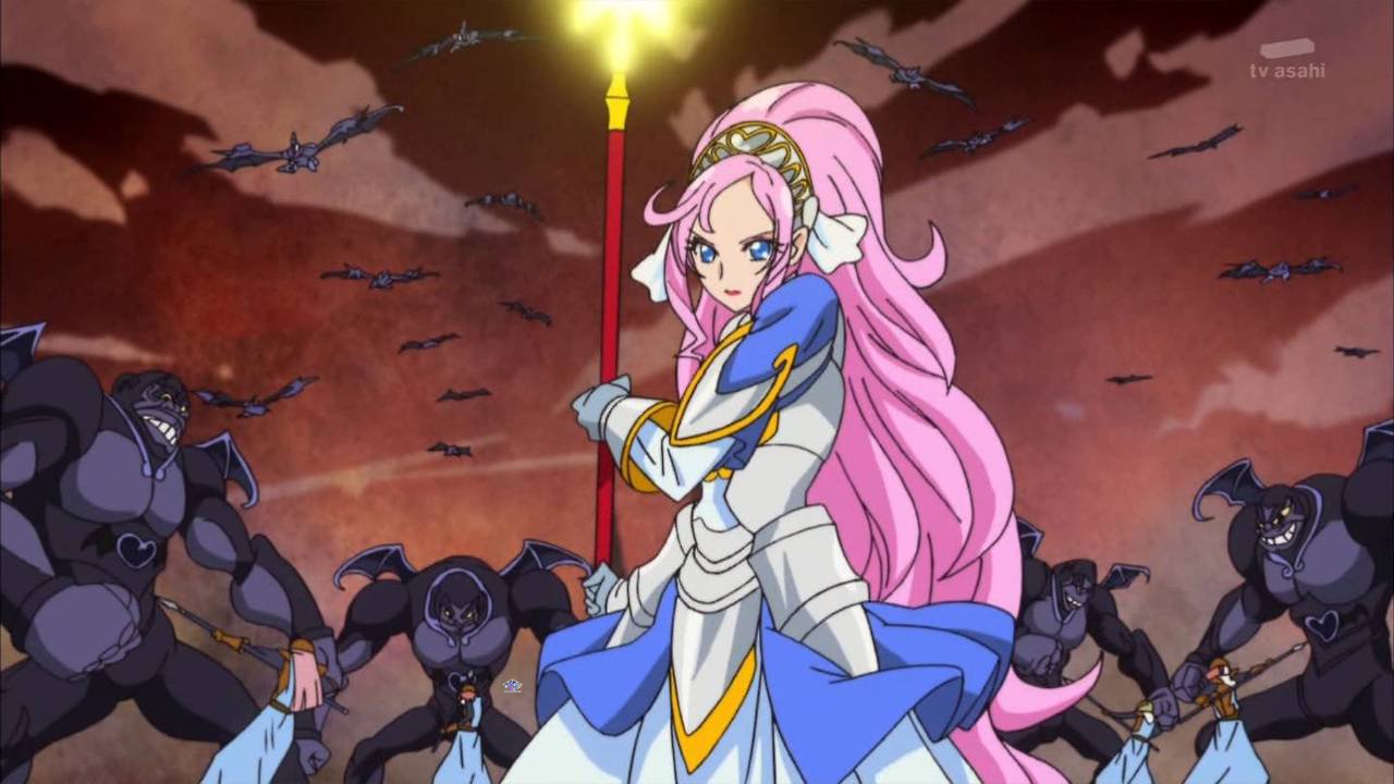The other two artifacts are a crown and a spear and are called Eternal Golden Crown and Miracle Dragon Glaive. The crown is still a mystery but the spear is a weapon that belonged to the Princess Marie-Ange and is therefore identifiable from the previous episodes. These three objects are reminiscent of the three artifacts of Sailor Uranus, Sailor Neptune and Sailor Pluto in the Sailor Moon series and may well do also appear a fourth when they are together all three.