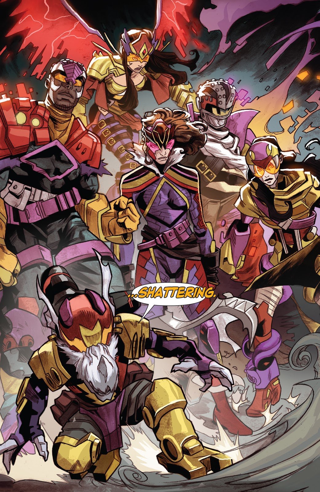 Le Dragon Zedd est détruit par Eclipta. On note une petite surprise : la présence de Skull. Dans la continuité pré-Shattered Grid, il avait été froidement exécuté par Lord Drakkon après qu’il ait découvert son double jeu. Eclipta finit par être blessée par Scorpina, mais parvient à tenir en échec ses adversaires perdant définitivement leurs pouvoirs à un moment donné. Eclipta exige alors que les Sans Médaillons et les ex-Sentries prêtent allégeance à Dark Specter. Ils refusent et le héraut de Dark Specter est submergé par la masse.
