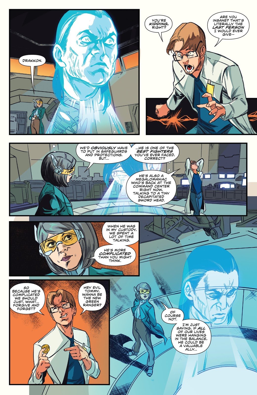 Pendant ce temps à Promethea, Billy et Grace parviennent à restaurer le médaillon du Dragon à l’aide de la Dague du Psycho Ranger vert. Cependant, l’enthousiasme est de courte durée pour Billy. Grace n’a pas l’intention de rendre le médaillon à Zordon, estimant qu’elle ne subira plus les conséquences de ses mauvaises décisions (Référence à la bataille face au Psycho Ranger vert en 1969). Elle explique aussi à Billy que Zordon ne lui fera plus confiance en découvrant la vérité. Il est également temps pour Promethea d’avoir son propre Ranger. Constatant sa réaction dubitative face à la liste de candidats potentiels, Grace évoque alors Lord Drakkon comme dernier recours dans le pire des scénarios.