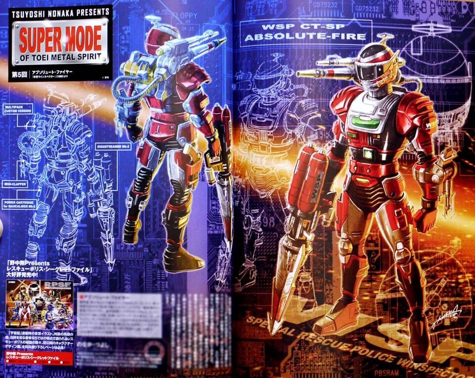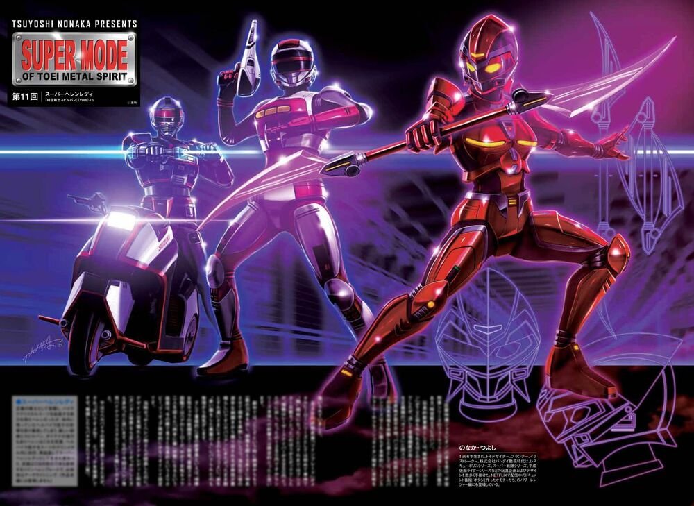 For some time now, he regularly publishes in the magasine Uchusen articles revealing production secrets of some toys and Metal Heroes designs, with gorgeous drawings of his own. Some of them are Super Modes imagined by the man himself that could have been official.