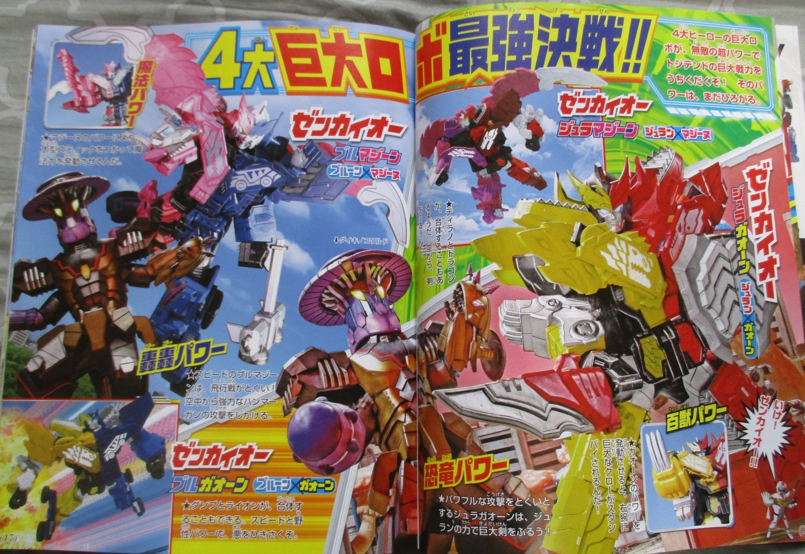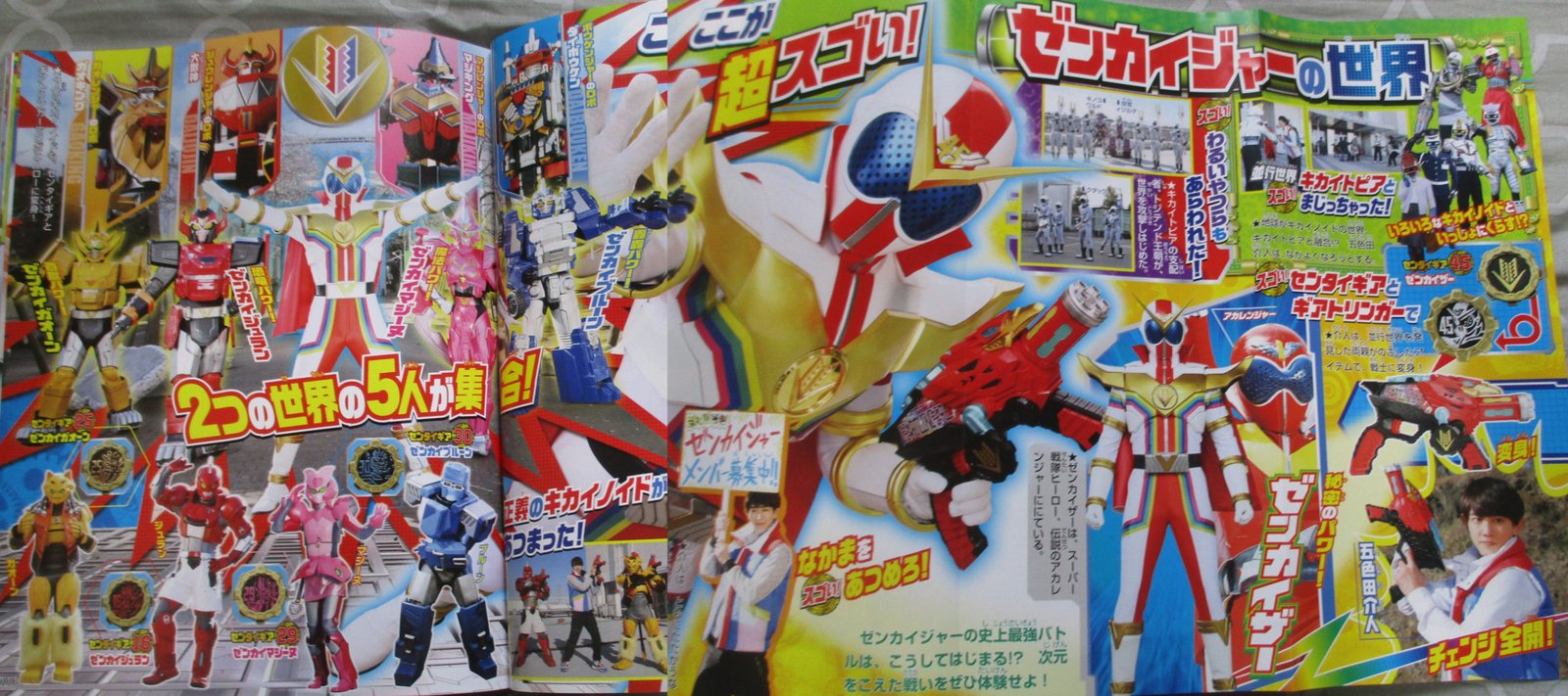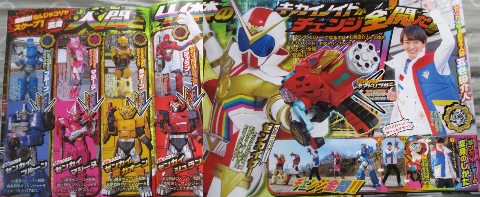 Grâce au côté verso de leur Sentai Gear, nos héros pourront grandir, et Zenkaizer aussi. Tel un enfant qui joue avec ses jouets, c’est lui qui formera les robots géants avec ses mains.
