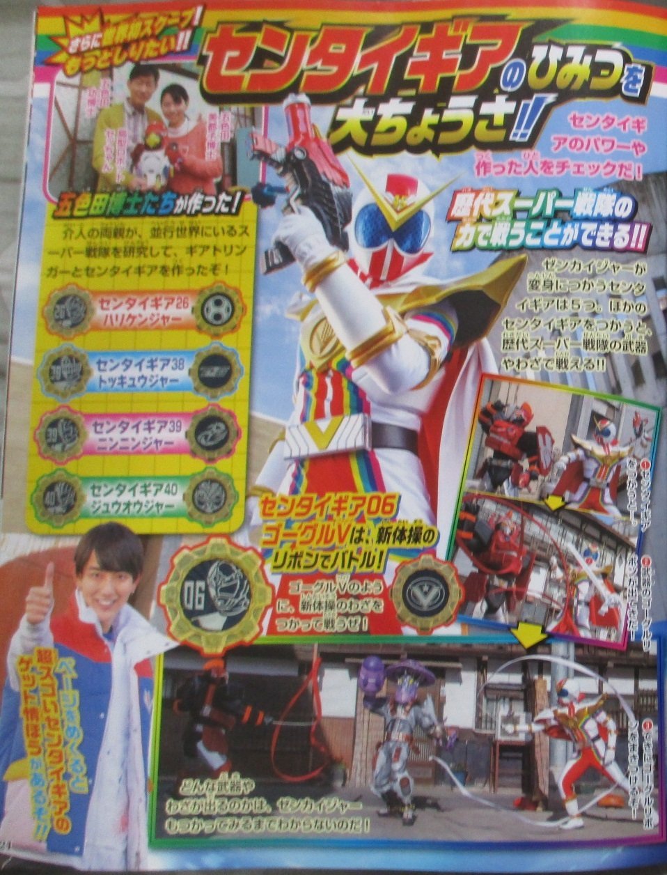 The Sentai Gears are not just collectible items. When a Zenkaiger activates one in his Geartlinger, he can summon a weapon or a capacity of said Sentai; such as Zyuoh Eagle’s wings, or Goggle-V’s ribbons.