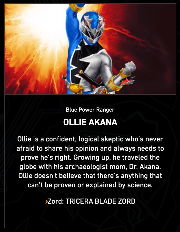 Ollie est un sceptique logique et confiant qui n’a jamais peur de partager son opinion et qui a toujours besoin de prouver qu’il a raison. En grandissant, il a voyagé à travers le globe avec sa mère archéologue, le Dr. Akana. Ollie pense que tout peut être prouvé ou expliqué par la science.