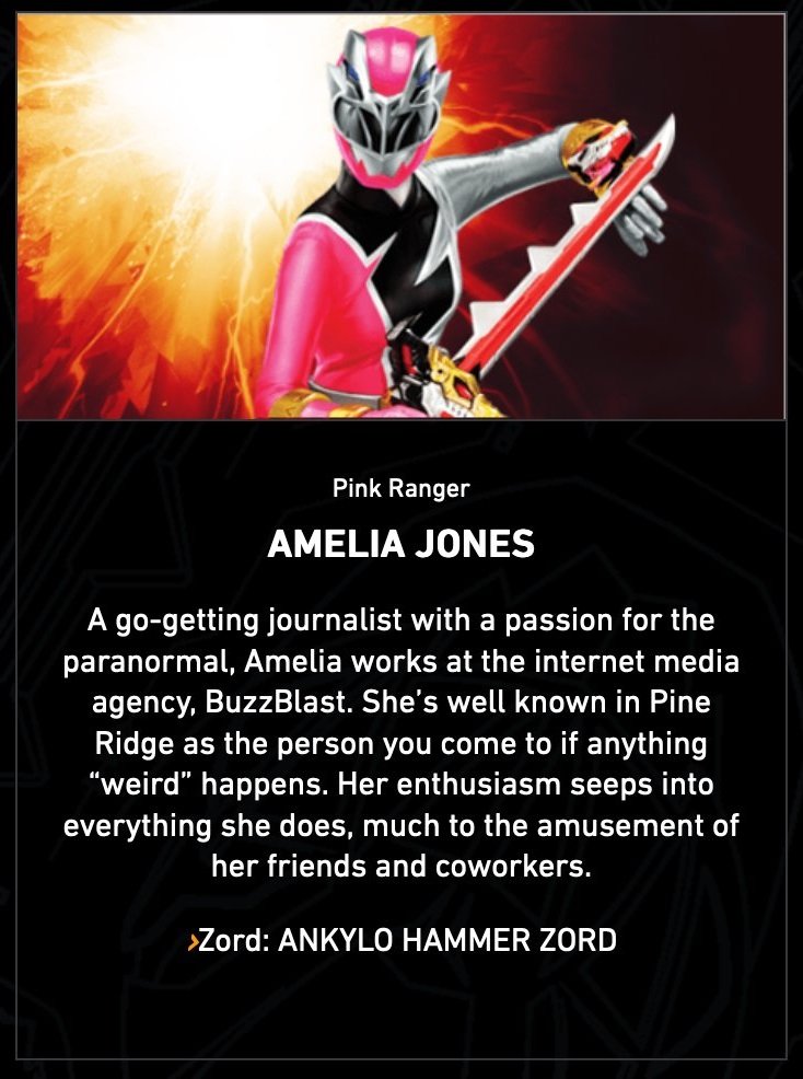 Journaliste déterminée et passionnée par le paranormal, Amelia travail à BuzzBlast, une agence de presse en ligne. Elle est très connue à Pine Ridge comme étant celle que l’on contacte s’il se passe quoi que ce soit de « bizarre ». Son enthousiasme se retrouve dans tout ce qu’elle fait, ce qui amuse beaucoup ses amis et ses collègues de travail.