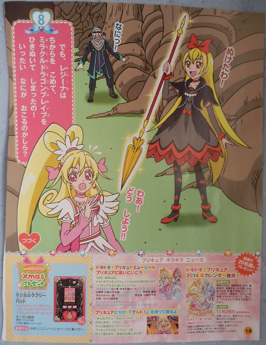 Tout commencerait dans les prochain épisodes quand les Jikochu retrouveront le Miracle Dragon Glaive, l’artefact légendaire qui appartenait auparavant à la Princesse Marie-Ange. Les Precures retrouveront aussi la trace de l’artefact grâce à leurs Magical Lovely Pad mais trop tard puisque ce sera Régina, la supposée fille du King Jikochu, de retour après son emprisonnement forcé, qui en prendra possession. Le contact avec le Miracle Dragon Glaive expulseraient alors toutes énergies maléfiques de Régina, faisant reprendre à sa tenue ses couleurs rouges.