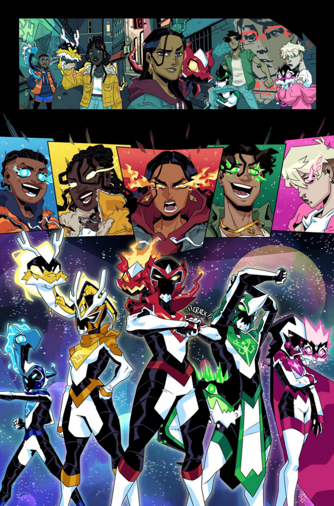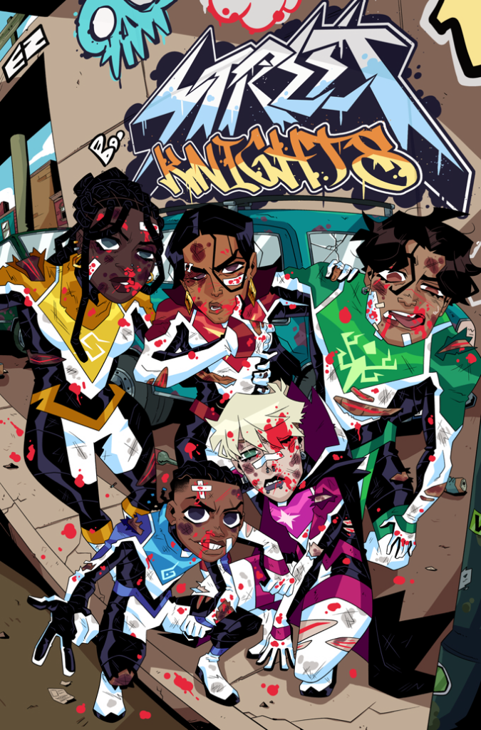 Lancée par l’éditeur américain Godhood Comics, reconnu pour mettre en lumière des personnages noirs, indigènes et de couleur, Street Knights s’impose comme une réinterprétation sombre et contemporaine du genre Super Sentai.