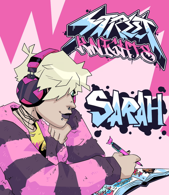 Passionnée par l’esthétique sombre et mélancolique, Sarah écrit des poèmes, dessine et écoute de la musique dans ses moments de solitude. Elle rêve de devenir autrice de comics et voue une grande passion aux animés et aux films de science-fiction. Issue d’un milieu très aisé, elle tient néanmoins à son indépendance et travaille à mi-temps dans la librairie comics du quartier. Son dragon s’appelle Wednesday.