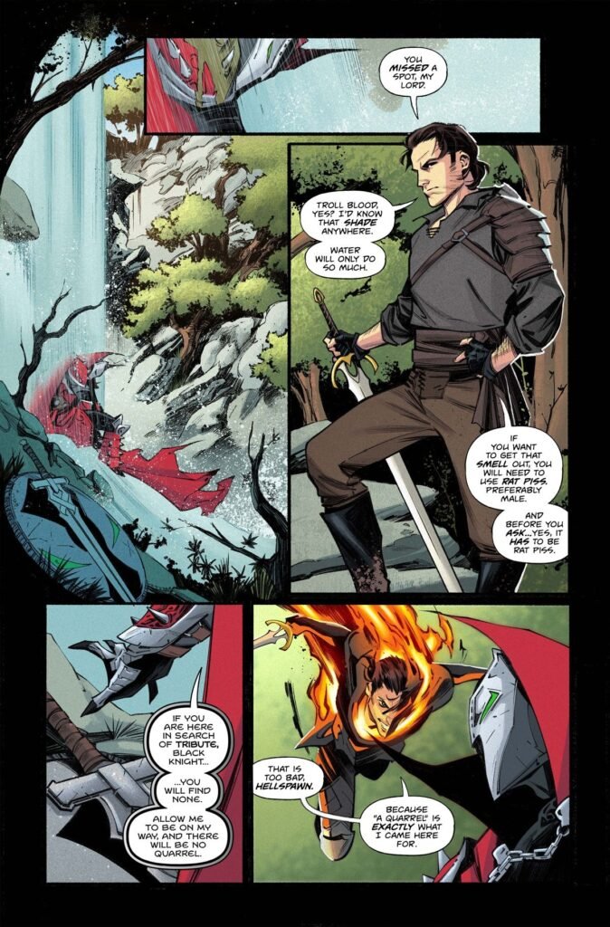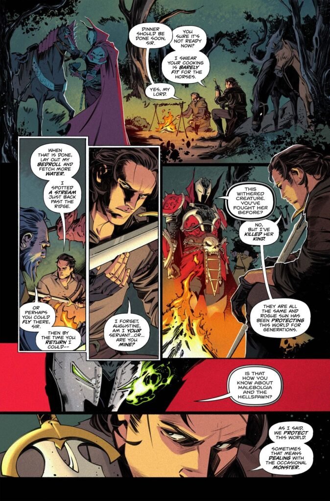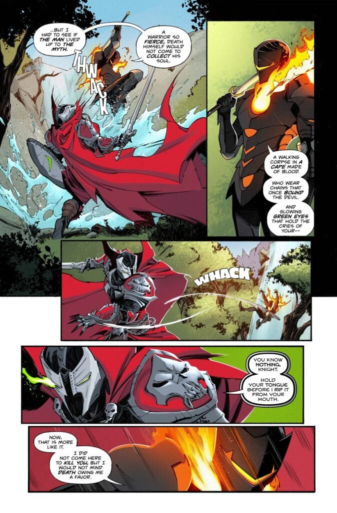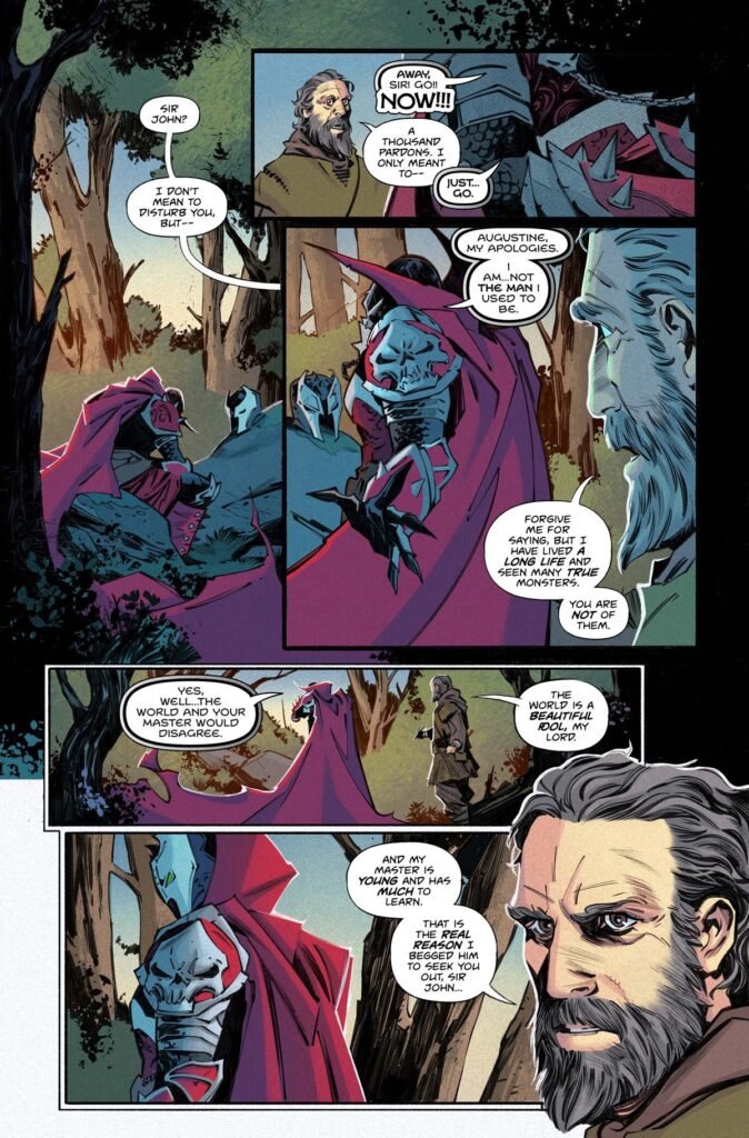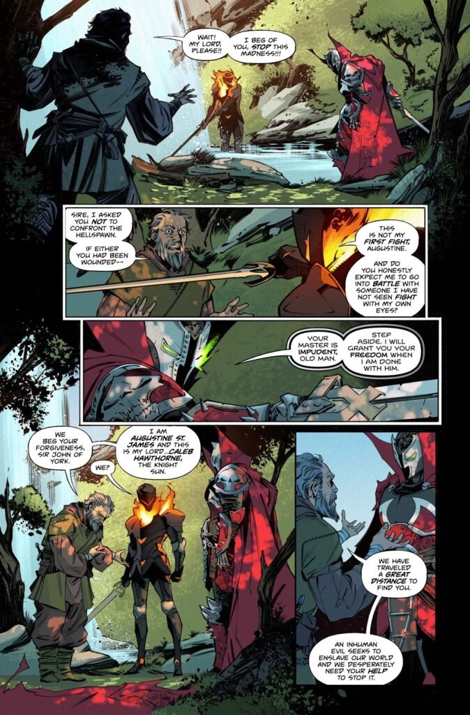 D’un côté, Caleb Hawthorne/Knight Sun, et de l’autre Sir John d’York/Medieval Spawn, personnage culte créé par les auteurs Neil Gaiman et Todd McFarlane.