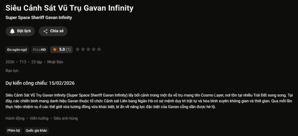 Le site de streaming FTP Play s’occupera de la diffusion de Gavan Infinity au Vietnam.