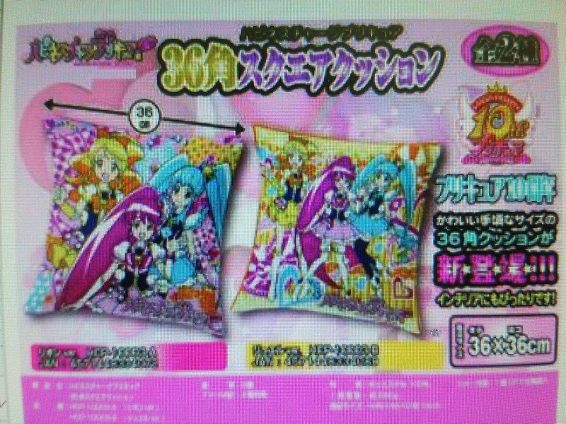 Des coussins à l’effigie des trois premières Cures de la série sont prévus et confirment les noms et orthographes de Lovely, Princess et Honey.