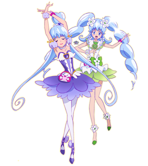 Nous n’avons malheureusement pas autant d’images pour leurs deux coéquipières Cure Honey et Cure Fortune et nous n’avons pas encore leurs identités civiles :
