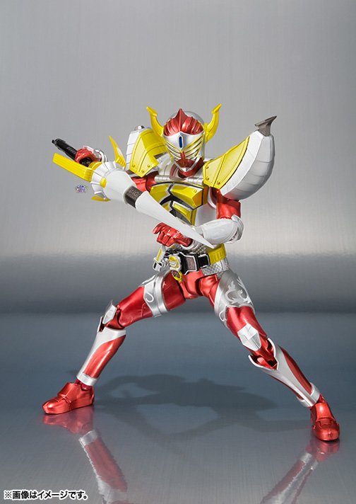 Ces figurines S.H.Figuarts de Kamen Rider Gaim Orange Arms et Kamen Rider Baron Banana Arms de 14 cm chacune seront disponibles en Mai prochain. Elle seront accompagnées de leurs armements respectifs ainsi que de deux parties d’une scène comprenant un plateau noir avec les symboles des quatre Riders principaux de la série (Gaim et Baron, mais aussi Ryugen et Zangetsu) et un panneaux paravent pliable doré.