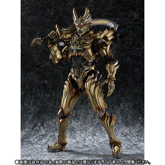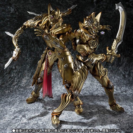 Those figures from MAKAI-KADO toyline of Enjin Kishi Zen and Tenkyu Kishi Gai in this Kin’iro Set will be 20 cm height and are in pre-orders on the Bandai Collectors Shop website and will be availables in next June.