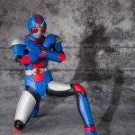 Kamen Rider Black RX is the hero of his own series in the late 80s. He is the first Kamen Rider to be able to change forms at will, unlike the old Riders whose suit changes in their series were either permanent or ephemeral (time for a few episodes or a single attack each time). He has two forms, whose one is called BioRider in blue, silver and red and whose the most representative speciality is its ability to « liquefy ». Unlike the RoboRider form, BioRider is stronger in close combat. These appearance changes also affects his motorcycle Acrobatter which also has two other forms in result. Regarding the RoboRider form, the Acrobatter becomes another white, blue and red motorcycle named Roboizer.