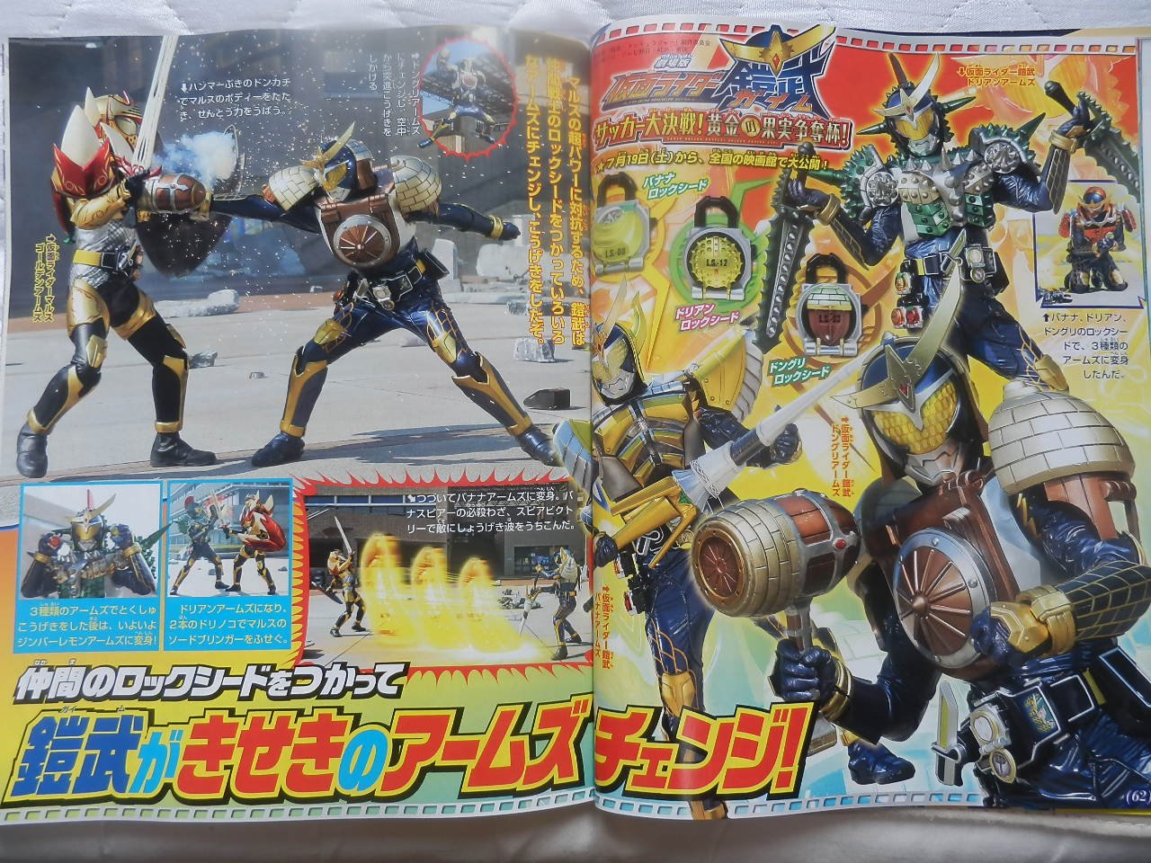 Just for fun, an ad for the card game Ganbarizing shows us a visual of Gaim Ryuki Arms.