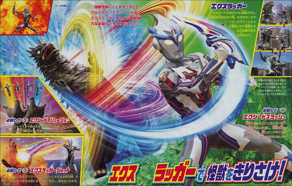 The Exclugger will evolve X to Exceed X. Funny enough, this dagger will be placed on his forehead. With it, he will be able to perform three attacks : Exceed Slash, Exceed Illusion and Exclugger Shoot.