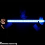 La Laser Blade est l’arme emblématique de Uchuu Keiji Gavan, héros de sa série éponyme. Concordant avec la sortie d’une édition Blu-ray de la série et le film Space Squad : Uchuu Keiji Gavan VS Tokusou Sentai Dekaranger, voici une reproduction de la Laser Blade dans la gamme TAMASHII Lab. Disponible en Janvier prochain, cette reproduction fera 81 cm de long et disposera ‘d’une garde en métal, d’une lame lumineuse, de deux mains en plastique pour exposition et de diverses fonctions sonores allant de musiques de la série à divers bruitages de coups.