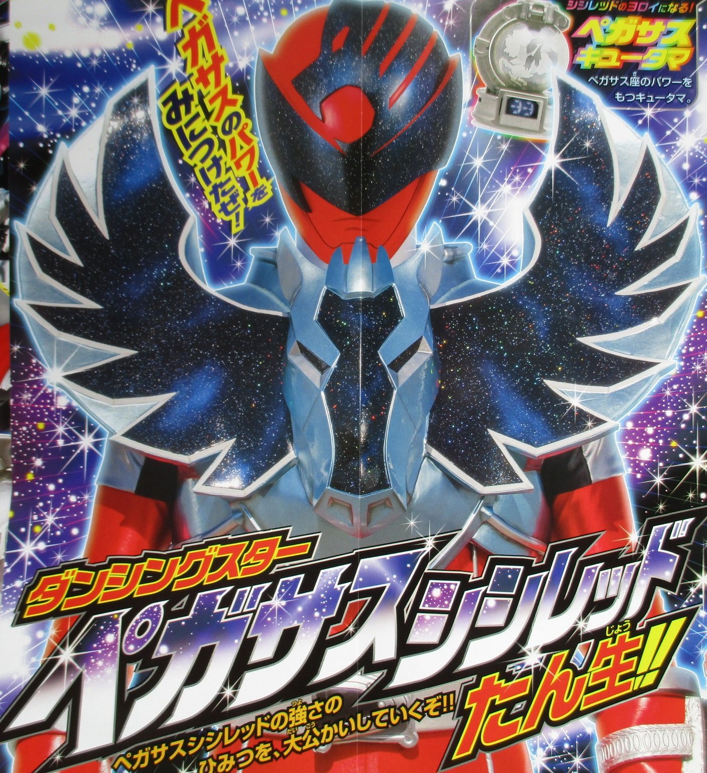 The Pegasus Kyutama (nicknamed Pega-san) will allow Lucky a body armour, super speed and the capacity to be a very good dancer. He will become the Dancing Star, Pegasus Shishi Red !