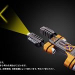 After Kamen Rider Faiz, here is the second hero from the Kamen Rider 555 series in the prestigious Complete Selection Modification range : Kamen Rider Kaixa ! As for Faiz, his equipment, the Kaixa Gear, is entitled to its CSM edition which will be quite exhaustive. This edition will include the Driver (the Kaixa Phone and the buckle where to place it for transformation), the Shot (the camera), the Pointer (the accessory for the famous attack of the rider kick), the Blaygun (the main weapon with both modes gun and sword), the different holders where to put all that (including the one to the leg for the Pointer) and obviously the belt. The Kaixa Phone will have a plethora of sounds including musics, songs and sentences from the characters from the series and various modes of attack. The Pointer and the Blaygun will also have a little bonus as luminous functions with the projection of the specific cross mark of the hero’s attacks. All of this will be available in next April in two different ways with a complete set so named Kaixa Gear and another incomplete with only the belt, the buckle and the Kaixa Phone named Kaixa Driver.