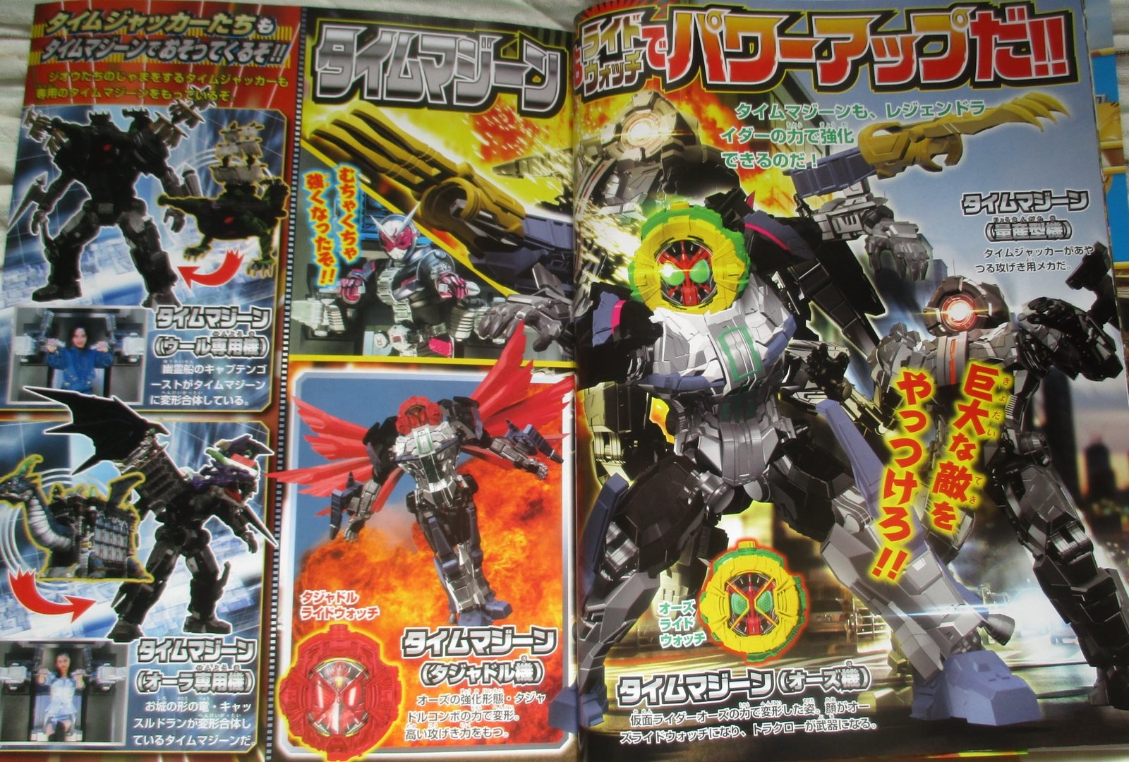 We will finally see the Time Mazine in action with the powers of the past Riders. He will use the OOO and OOO TaJaDor Ridewatches to slash enemies and fly.