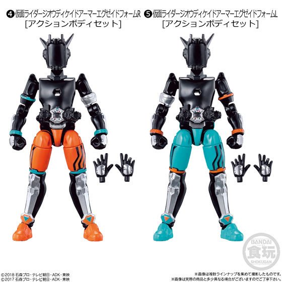 Contenu/Contents : Les deux figurines de Kamen Rider Zi-O DecadeArmor Ex-AidForm R et Kamen Rider Zi-O DecadeArmor Ex-AidForm L et leurs accessoires divisés sur trois boites et les figurines de Kamen Rider Zi-OTrinity et Kamen Rider Killbus chacune divisée sur deux boites. Chaque boite avec une notice et un bonbon/The two figures of Kamen Rider Zi-O DecadeArmor Ex-AidForm R and Kamen Rider Zi-O DecadeArmor Ex-AidForm L and their accessories divided on three boxes and the figures of Kamen Rider Zi-OTrinity and Kamen Rider Killbus each divided on two boxes. Each box with a manual and a candy.