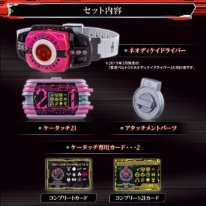 Contenu/Contents : Le NeoDecaDriver avec la ceinture, le K-Touch21, la Attachment Parts, deux cartes K-Touch Senyo Card (2000/2009 et 2009/2020), vingt-trois cartes KamenRide Card (Kuuga, Agito, Ryuki, Faiz, Blade, Hibiki, Kabuto, Den-O, Kiva, Decade, W, OOO, Fourze, Wizard, Gaim, Drive, Ghost, Ex-Aid, Build, Zi-O, GrandZi-O, Zero-One et Zero-Two), vingt cartes Final AttackRide Card (Kuuga, Agito, Ryuki, Faiz, Blade, Hibiki, Kabuto, Den-O, Kiva, Decade, W, OOO, Fourze, Wizard, Gaim, Drive, Ghost, Ex-Aid, Build et Zi-O), dix cartes Final FormRide Card (Kuuga, Agito, Ryuki, Faiz, Blade, Hibiki, Kabuto, Den-O, Kiva et Decade) et la notice/The NeoDecaDriver with the belt, the K-Touch21, the Attachment Parts, two K-Touch Senyo Card (2000/2009 and 2009/2020), twenty-three KamenRide Card (Kuuga, Agito, Ryuki, Faiz, Blade, Hibiki, Kabuto, Den-O, Kiva, Decade, W, OOO, Fourze, Wizard, Gaim, Drive, Ghost, Ex-Aid, Build, Zi-O, GrandZi-O, Zero-One and Zero-Two), twenty Final AttackRide Card (Kuuga, Agito, Ryuki, Faiz, Blade, Hibiki, Kabuto, Den-O, Kiva, Decade, W, OOO, Fourze, Wizard, Gaim, Drive, Ghost, Ex-Aid, Build and Zi-O), ten Final FormRide Card (Kuuga, Agito, Ryuki, Faiz, Blade, Hibiki, Kabuto, Den-O, Kiva and Decade) and the manual.