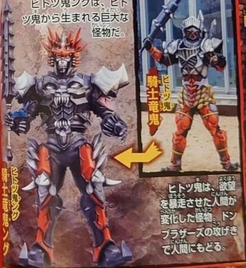 As for the villains, we finally have the name of the Hitotsuki we saw in the trailer : Resshaki (most likely a nod to Toqger).